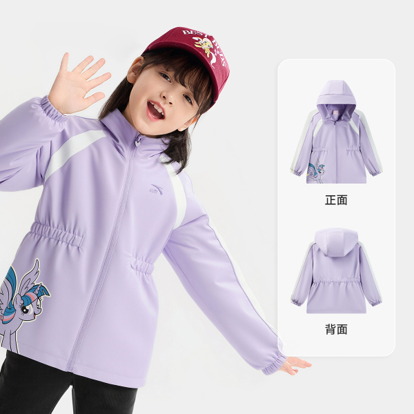 【活动价329-40立减-10元单品直降-21.19(满400-30元分摊)-9.87淘金币-21.25(消费券分摊)-55.8礼金*93折=158.93元】小马宝莉联名款!安踏儿童女童丝光绒运动上衣,2026春新款,柔软保暖,女孩厚外套首.选!可爱印花设计,舒适又时尚,宝贝穿出童趣风采!